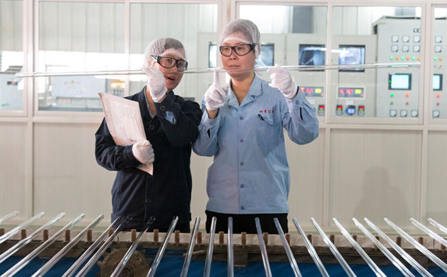 我們使用的是冷頂式全電熔維洛法生產5.0中性硼硅玻璃管,獲得了國家發明專利(專利號:ZL200710187477.5,專利證書號:745115),產品被評為2014年國家級重點新產品,并成為國家“十二五規劃”戰略性新興產業的重點扶持項目。