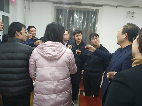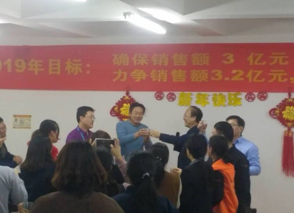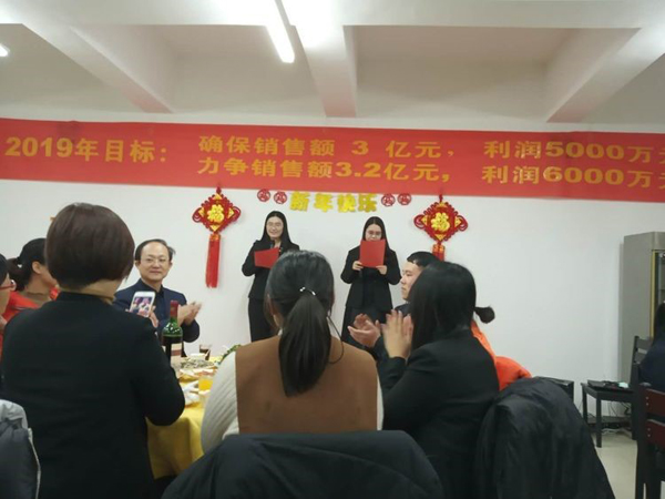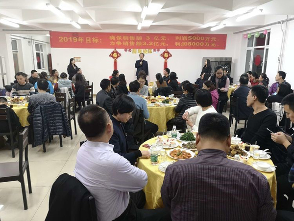 董事長首先給大家拜年鞠躬,感謝大家一年來的付出。回顧2018年的艱難與艱辛,社會經濟形勢疲軟,公司雖然緊張但已經是同地區過的最好的大公司,感謝大家這一年對公司的信任與支持,同時也肯定了2018年是公司業績最優,技術突破最多,成績最好的一年。