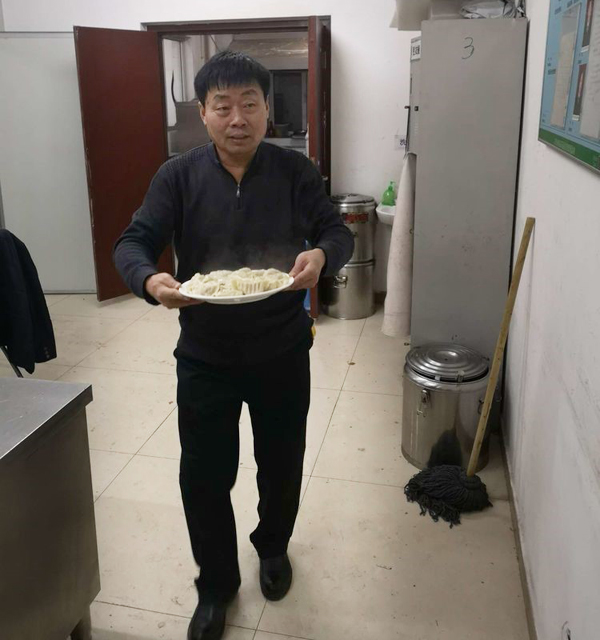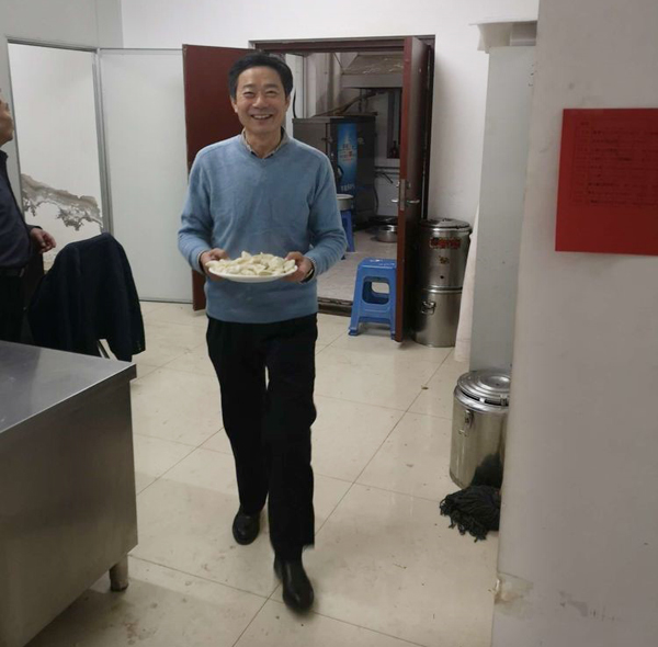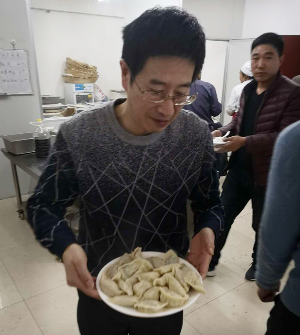 張永華總,大化來的高級高管,雖然膝蓋疼痛,但是為咱們員工端起餃子來,活力十足,一下年輕20歲。