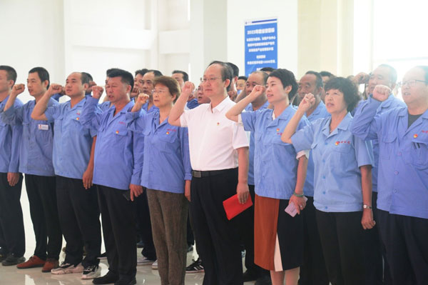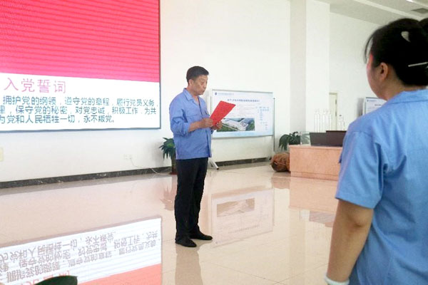 黨支部書記、董事長王煥一,支部副書記、行政副總李蘭舟, 公司顧問王建民,副總經理范俊英,副總經理王錦松,公司總工程師王希偉,公司顧問段玉新等黨員領導干部,公司全體黨員、部分提出入黨申請的積極分子等110人參加或列席活動。李蘭舟主持儀式。